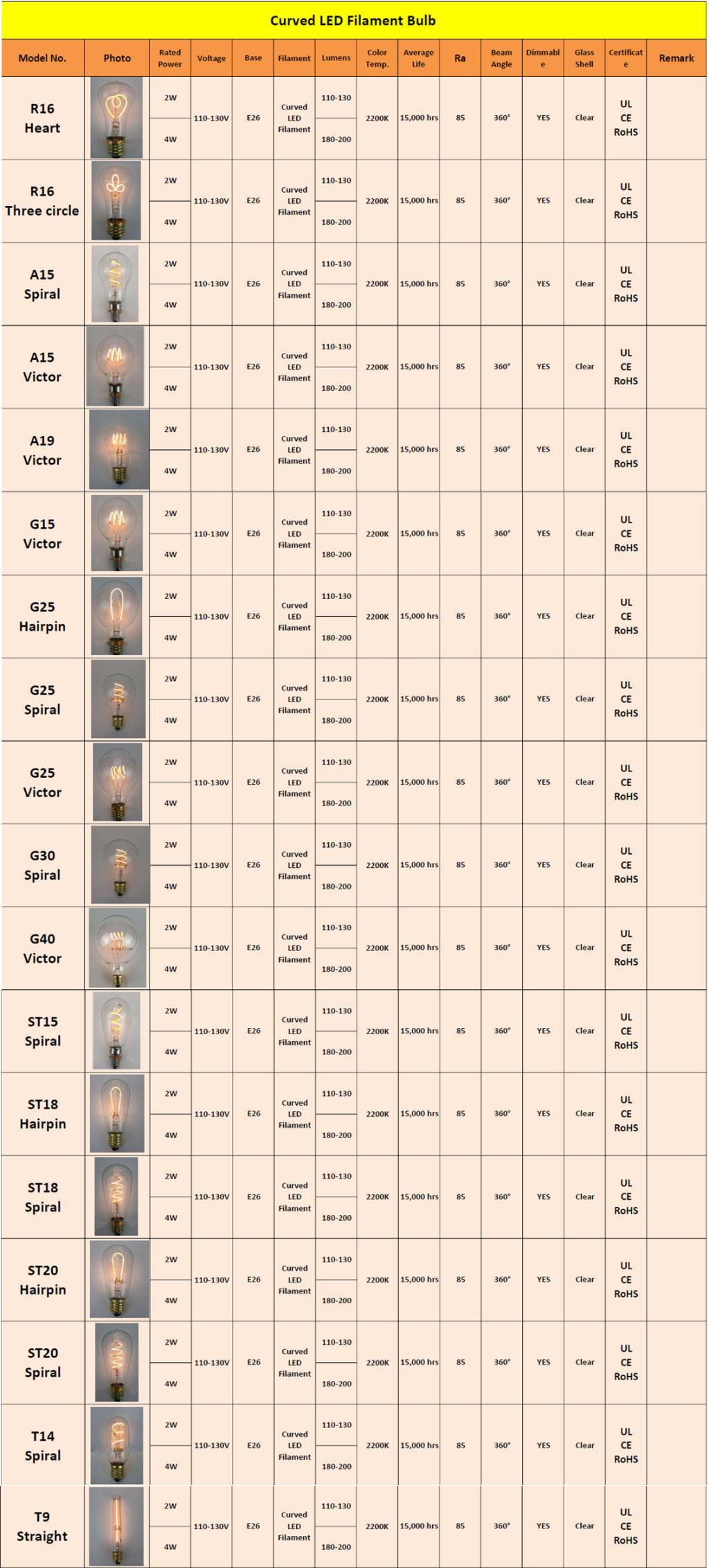 Present position:Home » PRODUCTS » LED Lamp » Curved LED Filament Bulbs